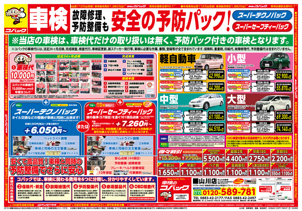 有限会社山川自動車は 吉野川市・阿波市・美馬市・鴨島・山川・川島・学エリアで車検のコバック 山川店を運営しております。 吉野川市・阿波市・美馬市・鴨島・山川・川島・学エリアにある車検のコバック 山川店の車検受付時間やアクセス方法をご確認ください。